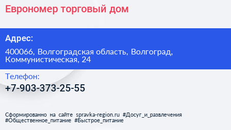 Еврономер, торговый дом по адресу 400066, Волгоградская область, Волгоград, Коммунистическая, 24 в дальнейшем Организация, размещена в следующих категориях: