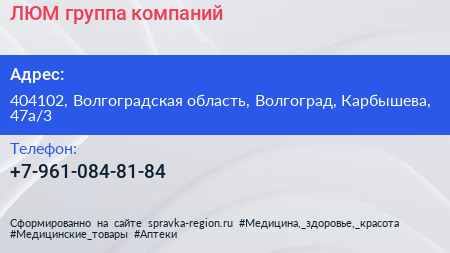 ЛЮМ, группа компаний по адресу 404102, Волгоградская область, Волгоград, Карбышева, 47а/3 в дальнейшем Организация, размещена в следующих категориях: