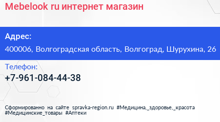 Mebelook.ru, интернет-магазин по адресу 400006, Волгоградская область, Волгоград, Шурухина, 26 в дальнейшем Организация, размещена в следующих категориях: