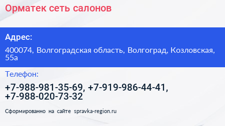 Орматек, сеть салонов по адресу 400074, Волгоградская область, Волгоград, Козловская, 55а в дальнейшем Организация, размещена в следующих категориях: