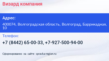 Визард, компания по адресу 400074, Волгоградская область, Волгоград, Баррикадная, 10 в дальнейшем Организация, размещена в следующих категориях: