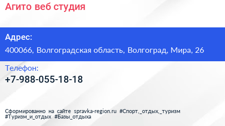Агито, веб-студия по адресу 400066, Волгоградская область, Волгоград, Мира, 26 в дальнейшем Организация, размещена в следующих категориях: