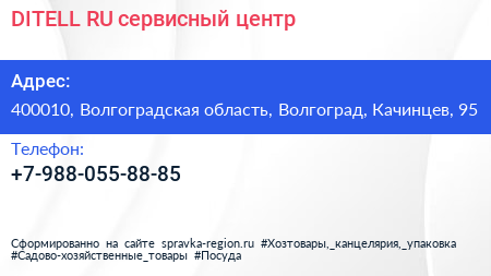 DITELL.RU, сервисный центр по адресу 400010, Волгоградская область, Волгоград, Качинцев, 95 в дальнейшем Организация, размещена в следующих категориях: