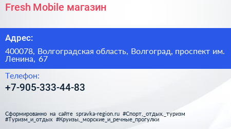 Fresh Mobile, магазин по адресу 400078, Волгоградская область, Волгоград, проспект им. Ленина, 67 в дальнейшем Организация, размещена в следующих категориях: