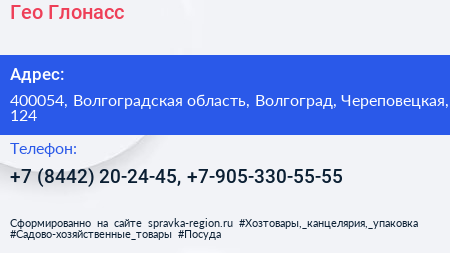 Гео Глонасс по адресу 400054, Волгоградская область, Волгоград, Череповецкая, 124 в дальнейшем Организация, размещена в следующих категориях: