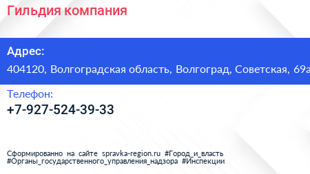 Гильдия, компания по адресу 404120, Волгоградская область, Волгоград, Советская, 69а в дальнейшем Организация, размещена в следующих категориях:
