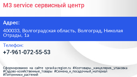 М3 service, сервисный центр по адресу 400033, Волгоградская область, Волгоград, Николая Отрады, 1а в дальнейшем Организация, размещена в следующих категориях: