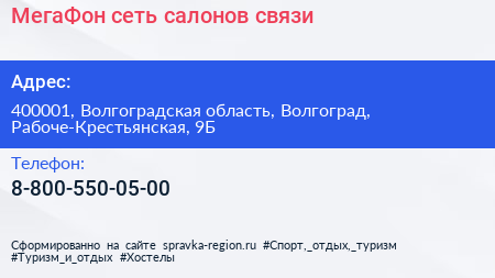 МегаФон, сеть салонов связи по адресу 400001, Волгоградская область, Волгоград, Рабоче-Крестьянская, 9Б в дальнейшем Организация, размещена в следующих категориях:
