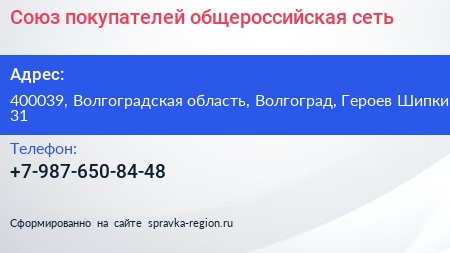 Союз покупателей, общероссийская сеть по адресу 400039, Волгоградская область, Волгоград, Героев Шипки, 31 в дальнейшем Организация, размещена в следующих категориях: