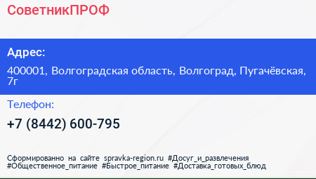 СоветникПРОФ по адресу 400001, Волгоградская область, Волгоград, Пугачёвская, 7г в дальнейшем Организация, размещена в следующих категориях: