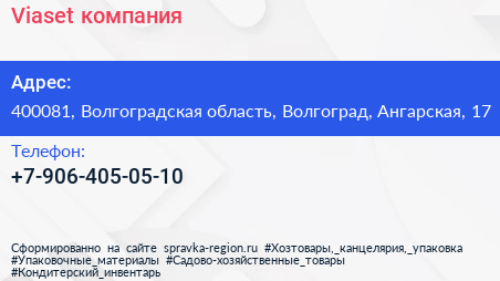 Viaset, компания по адресу 400081, Волгоградская область, Волгоград, Ангарская, 17 в дальнейшем Организация, размещена в следующих категориях: