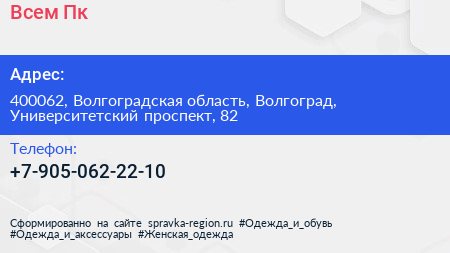 Всем Пк по адресу 400062, Волгоградская область, Волгоград, Университетский проспект, 82 в дальнейшем Организация, размещена в следующих категориях: