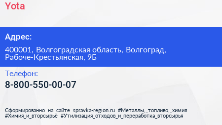 Yota по адресу 400001, Волгоградская область, Волгоград, Рабоче-Крестьянская, 9Б в дальнейшем Организация, размещена в следующих категориях: