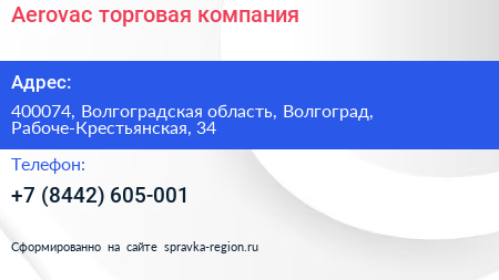 Aerovac, торговая компания по адресу 400074, Волгоградская область, Волгоград, Рабоче-Крестьянская, 34 в дальнейшем Организация, размещена в следующих категориях: