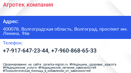 Агротек, компания по адресу 400078, Волгоградская область, Волгоград, проспект им. Ленина, 96в в дальнейшем Организация, размещена в следующих категориях: