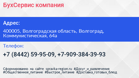 БухСервис, компания по адресу 400005, Волгоградская область, Волгоград, Коммунистическая, 64а в дальнейшем Организация, размещена в следующих категориях: