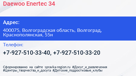 Daewoo Enertec 34 по адресу 400075, Волгоградская область, Волгоград, Краснополянская, 55н в дальнейшем Организация, размещена в следующих категориях: