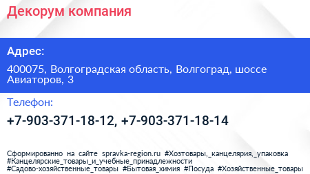 Декорум, компания по адресу 400075, Волгоградская область, Волгоград, шоссе Авиаторов, 3 в дальнейшем Организация, размещена в следующих категориях: