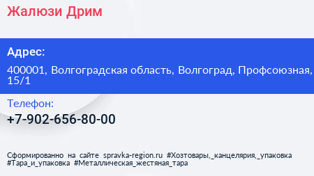 Жалюзи Дрим по адресу 400001, Волгоградская область, Волгоград, Профсоюзная, 15/1 в дальнейшем Организация, размещена в следующих категориях: