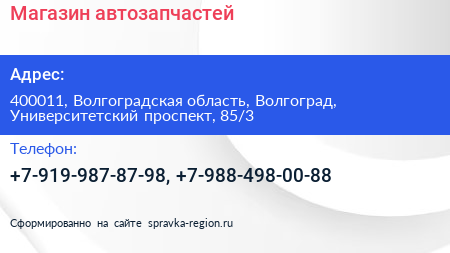 Магазин автозапчастей по адресу 400011, Волгоградская область, Волгоград, Университетский проспект, 85/3 в дальнейшем Организация, размещена в следующих категориях: