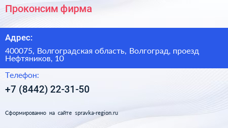 Проконсим, фирма по адресу 400075, Волгоградская область, Волгоград, проезд Нефтяников, 10 в дальнейшем Организация, размещена в следующих категориях: