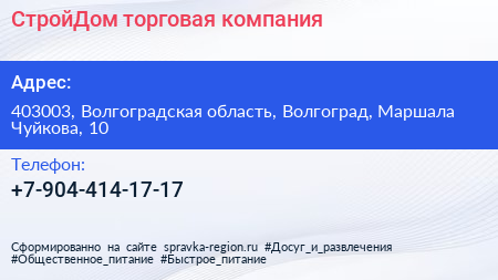 СтройДом, торговая компания по адресу 403003, Волгоградская область, Волгоград, Маршала Чуйкова, 10 в дальнейшем Организация, размещена в следующих категориях: