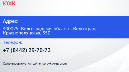 ЮХК по адресу 400075, Волгоградская область, Волгоград, Краснополянская, 55Б в дальнейшем Организация, размещена в следующих категориях: