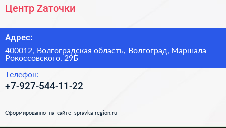 Центр Zаточки по адресу 400012, Волгоградская область, Волгоград, Маршала Рокоссовского, 29Б в дальнейшем Организация, размещена в следующих категориях: