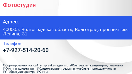 Фотостудия по адресу 400005, Волгоградская область, Волгоград, проспект им. Ленина, 31 в дальнейшем Организация, размещена в следующих категориях: