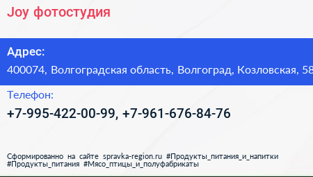 Joy, фотостудия по адресу 400074, Волгоградская область, Волгоград, Козловская, 58 в дальнейшем Организация, размещена в следующих категориях: