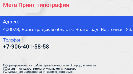 Мега-Принт, типография по адресу 400078, Волгоградская область, Волгоград, Восточная, 23а в дальнейшем Организация, размещена в следующих категориях: