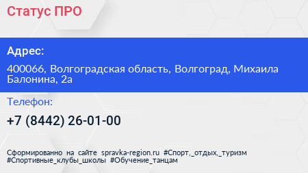 Статус ПРО по адресу 400066, Волгоградская область, Волгоград, Михаила Балонина, 2а в дальнейшем Организация, размещена в следующих категориях:
