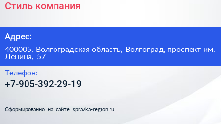 Стиль, компания по адресу 400005, Волгоградская область, Волгоград, проспект им. Ленина, 57 в дальнейшем Организация, размещена в следующих категориях: