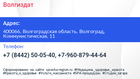Волгиздат по адресу 400066, Волгоградская область, Волгоград, Коммунистическая, 11 в дальнейшем Организация, размещена в следующих категориях:
