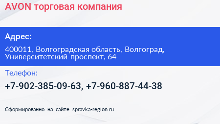 AVON, торговая компания по адресу 400011, Волгоградская область, Волгоград, Университетский проспект, 64 в дальнейшем Организация, размещена в следующих категориях: