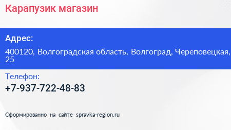 Карапузик, магазин по адресу 400120, Волгоградская область, Волгоград, Череповецкая, 25 в дальнейшем Организация, размещена в следующих категориях: