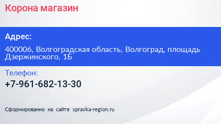 Корона, магазин по адресу 400006, Волгоградская область, Волгоград, площадь Дзержинского, 1Б в дальнейшем Организация, размещена в следующих категориях: