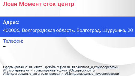 Лови Момент, сток-центр по адресу 400006, Волгоградская область, Волгоград, Шурухина, 20 в дальнейшем Организация, размещена в следующих категориях: