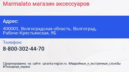 Marmalato, магазин аксессуаров по адресу 400001, Волгоградская область, Волгоград, Рабоче-Крестьянская, 9Б в дальнейшем Организация, размещена в следующих категориях: