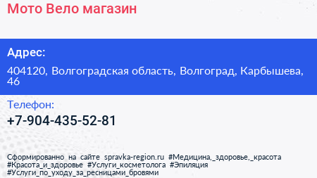 Мото-Вело, магазин по адресу 404120, Волгоградская область, Волгоград, Карбышева, 46 в дальнейшем Организация, размещена в следующих категориях: