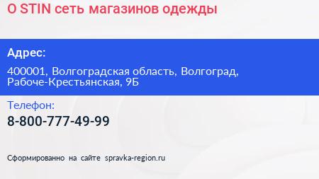 O`STIN, сеть магазинов одежды по адресу 400001, Волгоградская область, Волгоград, Рабоче-Крестьянская, 9Б в дальнейшем Организация, размещена в следующих категориях: