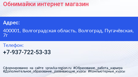 Обнимайки, интернет-магазин по адресу 400001, Волгоградская область, Волгоград, Пугачёвская, 7г в дальнейшем Организация, размещена в следующих категориях: