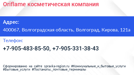 Oriflame, косметическая компания по адресу 400067, Волгоградская область, Волгоград, Кирова, 121а в дальнейшем Организация, размещена в следующих категориях:
