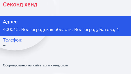 Секонд-хенд по адресу 400015, Волгоградская область, Волгоград, Батова, 1 в дальнейшем Организация, размещена в следующих категориях: