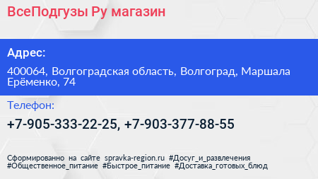 ВсеПодгузы.Ру, магазин по адресу 400064, Волгоградская область, Волгоград, Маршала Ерёменко, 74 в дальнейшем Организация, размещена в следующих категориях:
