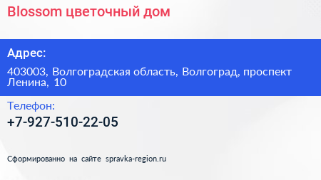 Blossom, цветочный дом по адресу 403003, Волгоградская область, Волгоград, проспект Ленина, 10 в дальнейшем Организация, размещена в следующих категориях: