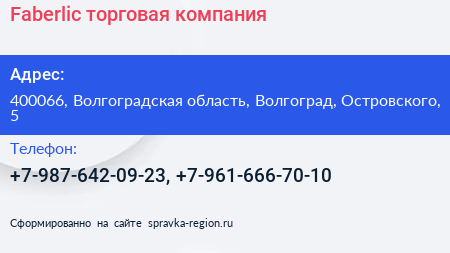 Faberlic, торговая компания по адресу 400066, Волгоградская область, Волгоград, Островского, 5 в дальнейшем Организация, размещена в следующих категориях: