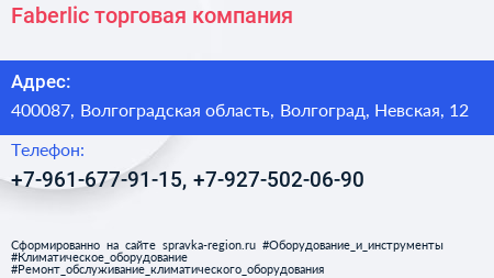 Faberlic, торговая компания по адресу 400087, Волгоградская область, Волгоград, Невская, 12 в дальнейшем Организация, размещена в следующих категориях: