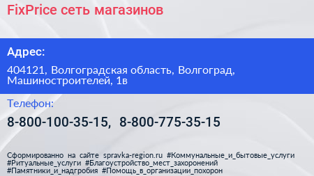 FixPrice, сеть магазинов по адресу 404121, Волгоградская область, Волгоград, Машиностроителей, 1в в дальнейшем Организация, размещена в следующих категориях: