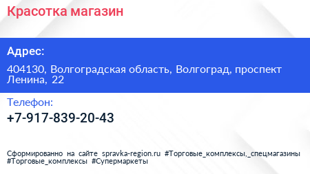 Красотка, магазин по адресу 404130, Волгоградская область, Волгоград, проспект Ленина, 22 в дальнейшем Организация, размещена в следующих категориях:
